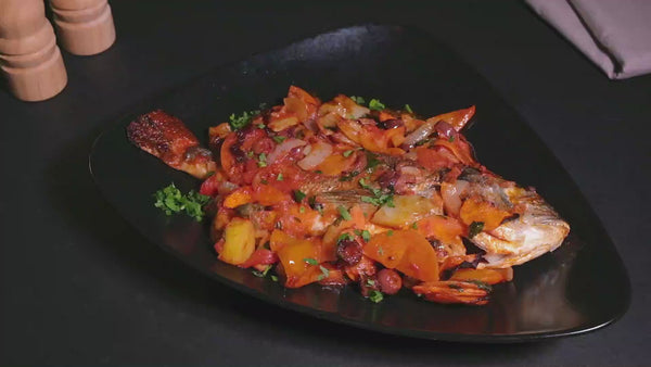 Descriere: dorada regala cu garnitura de legume proaspete la cuptor
