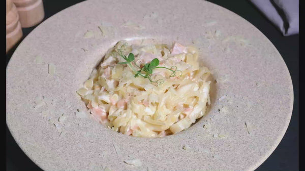 Ingrediente: paste tagliatelle, smantana de gatit, somon afumat, parmezan, unt, sare, piper